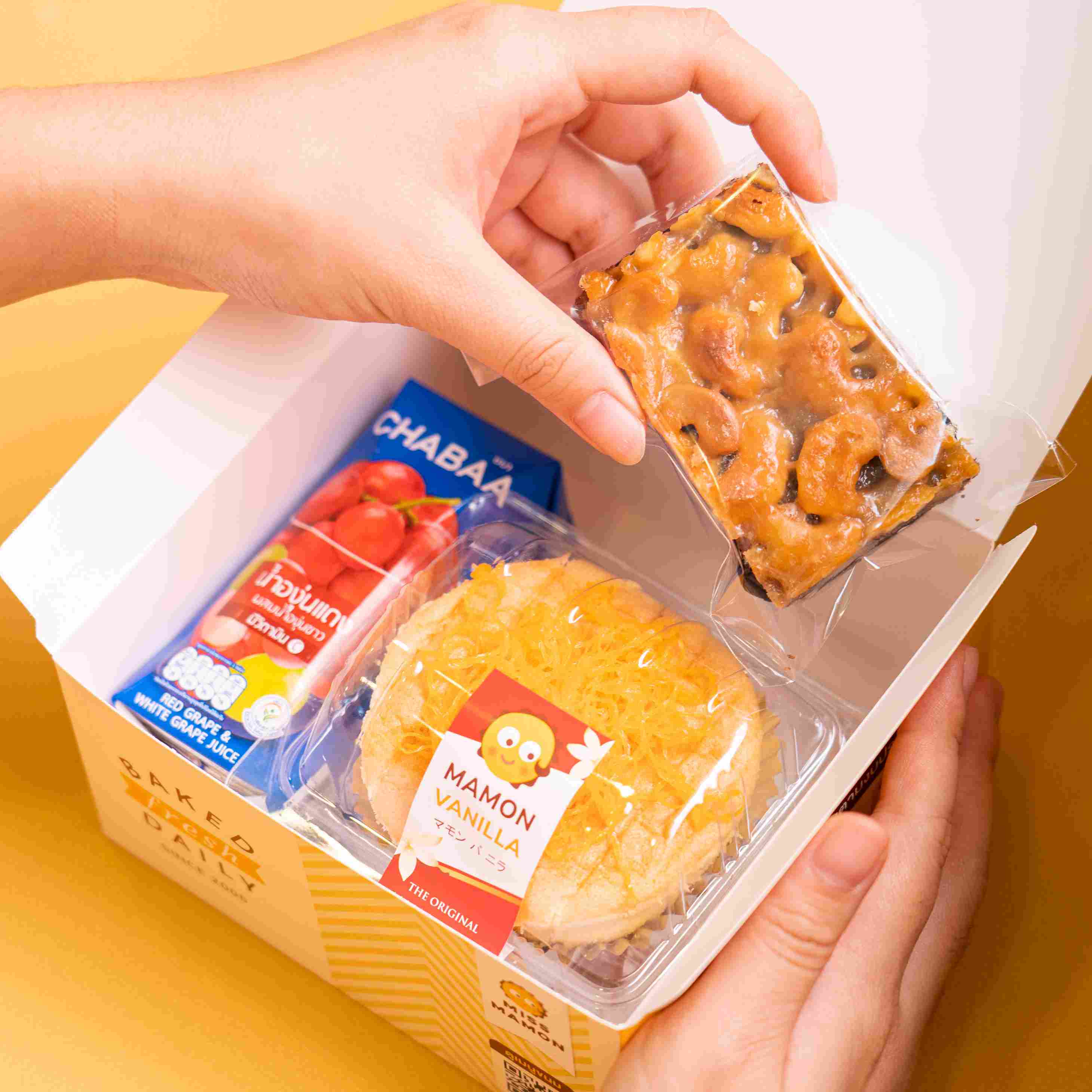 - ขนมมาม่อนเค้ก Signature เนื้อวานิลลายอดนิยมหน้าเชดดาชีส เนื้อเค้กนุ่ม ไม่ฝืดคอ