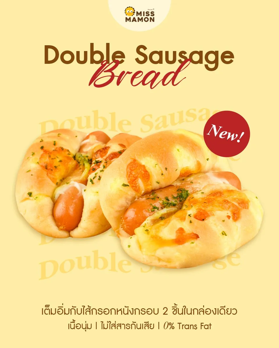มิส มาม่อน พร้อมเสิร์ฟ ความอร่อย ใหม่ !! Double Sausage Bread
