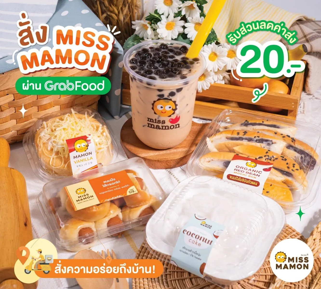 ให้พี่ๆได้อร่อยกับขนม และเครื่องดื่มสูตรโฮมเมดแบบรู้สึกผิดน้อยลงเพราะเป็น 0% Transfat จากมิส มาม่อนแบบจุใจทุกวัน โดยไม่ต้องกังวลเรื่องค่าส่งอีกต่อไป น้องมาม่อนแอบกระซิบว่าในร้านมิส มาม่อน บน Grab ยังมีโปรโมชั่นดีๆ รออยู่อีกเพียบเลยนะคะรู้แบบนี้ไปแล้วไปสั่งกันเล๊ย