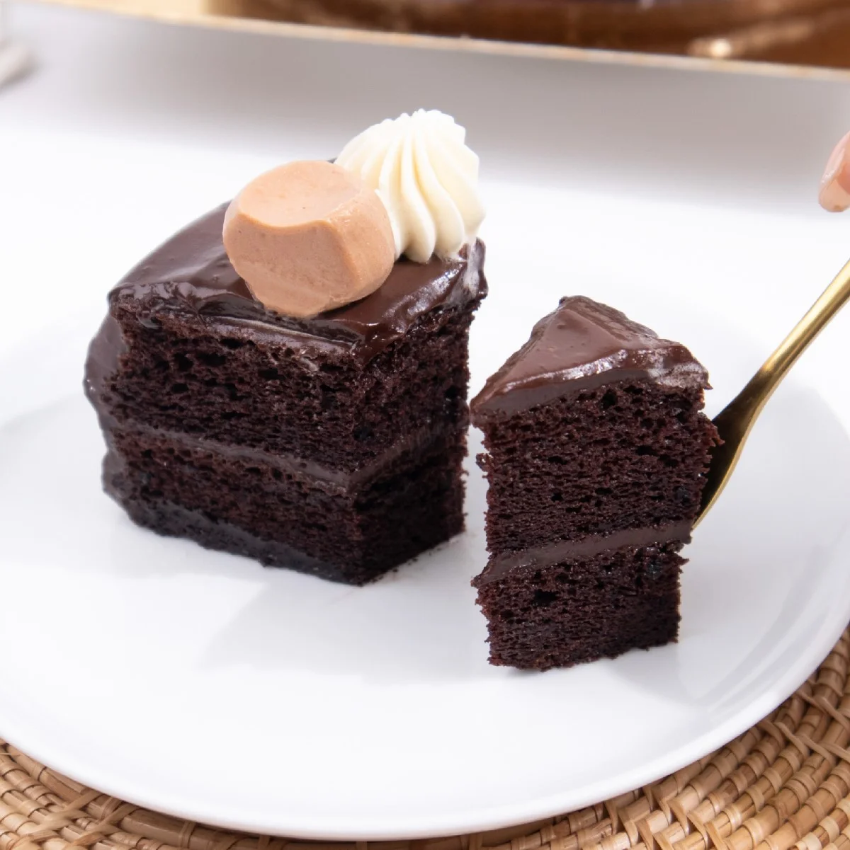 เค้กช็อกโกแลตกานาช เนื้อเค้กช็อกโกแลตฟัดจ์ ตกแต่งด้วยซอส ช็อกโกแลตเข้มข้น อีกหนึ่งเค้กคลาสสิกยอดนิยม