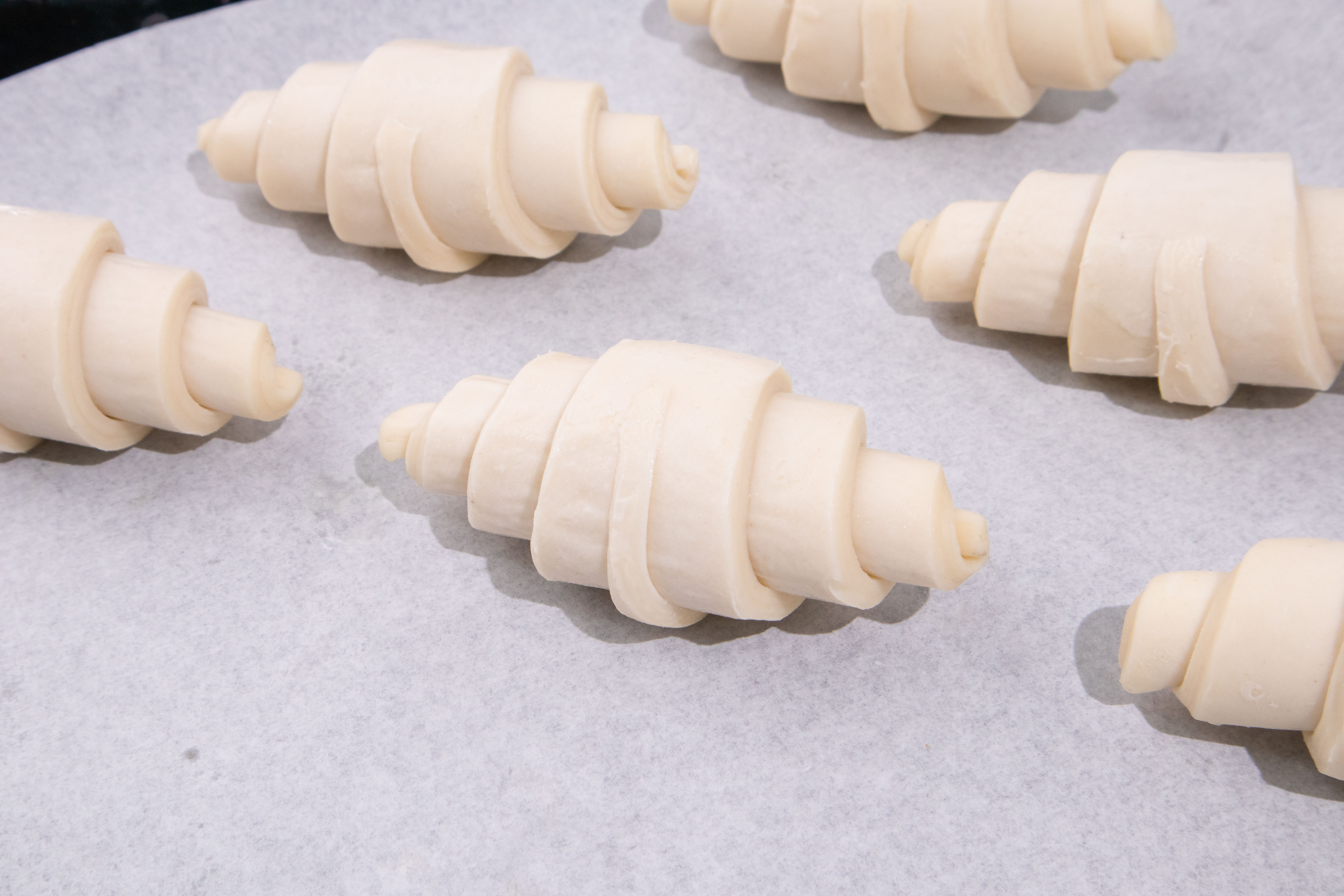 ครัวซองต์มีวิธีการทำที่สุดแสนจะประณีต โดยจะต้องทำการนำเอาเนยมาไว้ระหว่างแป้งที่พับทบกัน จากนั้นรีดแป้งออกเป็นแผ่นบาง ๆ แล้วพับทบกันไปเรื่อย ๆ พักแป้งสักระยะ จากนั้นก็นำมารีดแล้วพับทบอีกครั้ง แล้วก็พักแป้งอีกครั้ง ทำซ้ำกระบวนการนี้ไปอีกหลายรอบ ถึงจะกลายเป็น “แป้งโดว์ครัวซองต์” ที่พร้อมตัดแบ่ง จะเห็นว่าในขั้นตอนการเตรียมแป้ง สิ่งที่สำคัญมากคือ “เนย” เรียกได้ว่าการเลือกใช้เนย สามารถกำหนดรสชาติของครัวซองต์ได้แบบไม่เกินจริง เพราะฉะนั้นหากจะเลือกสั่งครัวซองต์แบบขายส่ง ควรรู้ว่าใช้เนยชนิดอะไร